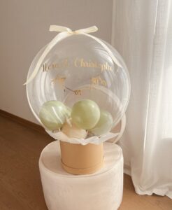 •Befüllen kannst Du den Bubble Ballon mit kleineren Ballons, Federn, Glitzer und Geld